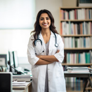 doctor female indian physician work blurred background friendly smiling beautiful healthcare medicine health care professional carImagine Buddy