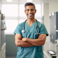 indian man therapist occupational work blurred background friendly smiling handsome male person adult professional medical healthcare patient disability rehabilitation recovery help support assistance treatment service care provider clinic office hospitalImagine Buddy