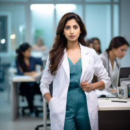 confident beautiful indian woman patient advocate work blurred background healthcare medicine doctor nurse professional career helping caring support helping hand smile success determination focused motivated successfulImagine Buddy