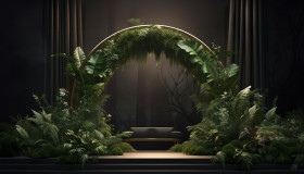 An upside down circular frame with plants on it 3d rendering, free ai prompts and images floral photo backdrops