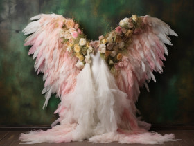 White angel wings backdrop for photoshoots and weddings, free ai prompts and images floral photo backdrops