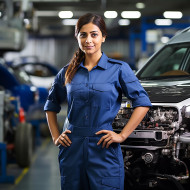 indian woman automotive quality control inspector work white background confident beautiful engineer mechanic factory manufacturing production assembly inspection testing safety quality assurance standardsImagine Buddy