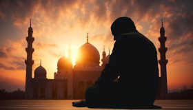 Sunset prayer at mosque, muslim stock image, muslim ai prompt, islamic stock image