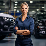 automotive auto car safety compliance specialist woman female confident beautiful work blurred background professional career occupation job engineer manager leader executive team teamwork collaboration innovation technology future progress successImagine Buddy