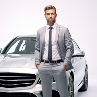 Confident handsome man automotive human resources manager at work on isolated white background