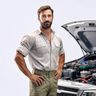 mechanic technician automotive car engine repair fix service maintenance tools uniform confident handsome man work white background smile professional skilled experienced knowledgeable reliableImagine Buddy