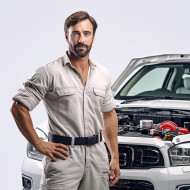 mechanic technician automotive car engine repair fix service maintenance tools uniform confident handsome man work white background smile professional skilled experienced knowledgeable reliableImagine Buddy