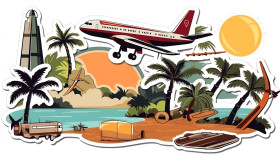 Sticker in style for travel, bumper stickers stock image, bumper stickers ai prompt, ai-generated bumper stickers