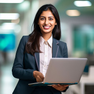 Riendly smiling beautiful indian woman banking and finance marketing manager at work on blured background