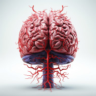 Brain with blood vessels and tumor graphic art 3d illustration,