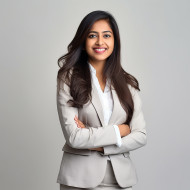 Friendly smiling beautiful indian woman banking and finance recruiter at work on blured background