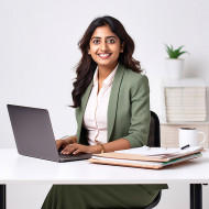 Friendly smiling beautiful indian woman banking and finance fund manager at work on blured background