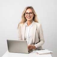 Friendly smiling beautiful woman banking and finance marketing manager at work on blured background