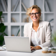 Friendly smiling beautiful woman banking and finance chief risk officer at work on blured background