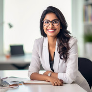 Friendly smiling beautiful indian woman banking and finance chief risk officer at work on blured background