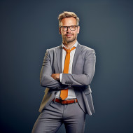 Confident handsome man banking and finance accountant at work on blured background