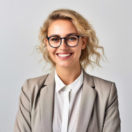 Friendly smiling beautiful woman banking and finance chief investment officer at work on blured background