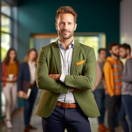 Confident handsome man banking and finance recruiter at work on blured background
