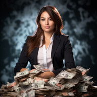 Confident beautiful woman banking and finance cash management specialist at work on blured background