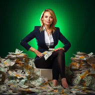 Confident beautiful woman banking and finance cash management specialist at work on blured background