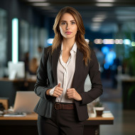 Confident beautiful woman banking and finance client relationship manager at work on blured background