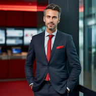banking finance recruiter work confident handsome blurred background professional office business suit tie laptop desk phone smile happy successful leader team growth career opportunity job employment hire recruit talent potential diversity inclusion equal representation finance wealth success achievement ambition goals motivation inspirationImagine Buddy