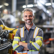 industrial models engineer industrial man handsome smiling friendly work background blurred people portrait male young professional factory machine technology hardhat vest tools blueprint helmet safety construction development manufacturing production innovation business industry career success achievement happy positive confident motivated determinedImagine Buddy