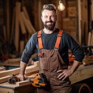 industrial models carpenter woodworking woodworker craftsman artisan skilled professional confident work job workshop tools equipment wood wood shavings sawdust lumber hammer saw chisel plane drill safety glasses earmuffs apron gloves boots blurred background workspace workshop industry craftsmanship carpentry construction building renovation repair maintenance creation makerImagine Buddy