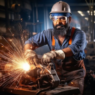 industrial models welder indian man confident work blurred background sparks metal gloves helmet goggles uniform factory industrial machinery sparks safety equipment protection arc welding torch hood mask molten metal fusion joining cutting fabrication steel manufacturing engineering construction repair maintenance skilled labor blue collar job work ethic pride determinationImagine Buddy