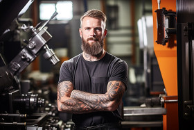 industrial models machinist confident work blurred background factory machine industry worker manufacturing engineer metal tools metalworking lathe lathe operator drill drill press sparks safety glasses hard hat gloves uniform boots overalls apron assembly production quality control quality assurance inspection measurement precision skill experience dedication craftsmanship teamwork collaboration safety success achievementImagine Buddy
