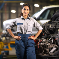 industrial models confident indian woman mechanic work blurred background automotive repair engine car truck vehicle female engineer technician skilled professional strong independent confident capable empowered inspiringImagine Buddy