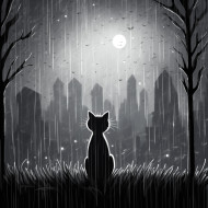 Black cat in the rain, animal t-shirt designs, animal t-shirt design stock images, animal t-shirt design ai prompts