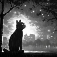 Cat watching the rain, animal t-shirt designs, animal t-shirt design stock images, animal t-shirt design ai prompts