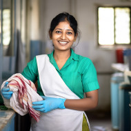 indian woman friendly smiling beautiful beauty personal care housekeeping work blurred background asian model female young adult person people happiness smile joy happiness positive emotion smiling cheerful happy attractive pretty stunning gorgeous domestic work home lifestyle indoors cleaningImagine Buddy