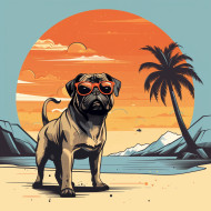Pug in sunglasses chilling on the beach, animal t-shirt designs, animal t-shirt design stock images, animal t-shirt design ai prompts