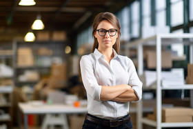 mason woman confident work blurred background construction building brick trowel mortar level safety glasses hard hat work boots gloves strong empowered skilled dedicated professional passionate role model inspiration trailblazer pioneerImagine Buddy