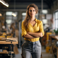 Woman mason confidently working on a blurred background
