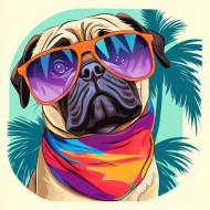 Pug in tropical gear, animal t-shirt designs, animal t-shirt design stock images, animal t-shirt design ai prompts