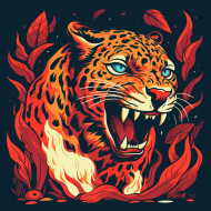 Leopard on fire, animal t-shirt designs, animal t-shirt design stock images, animal t-shirt design ai prompts