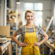 mason woman friendly smiling work blurred background construction worker builder tools bricks cement mortar trowel gloves hard hat safety vest boots skill strength power determination female role model inspiration diversity equalityImagine Buddy