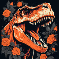 T-rex in black and orange floral , animal t-shirt designs, animal t-shirt design stock images, animal t-shirt design ai prompts