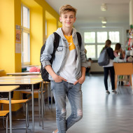 student male middle school education learning focused determined studious intelligent bright motivated ambitious hardworking confident blurred background school classroom desk book paper pencil penImagine Buddy