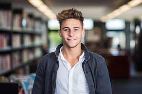 student male university confident focused determined ambitious motivated studious intelligent bright work blur background education learning study read write computer laptop tablet notebook pen pencil book textbook library classroom lecture seminar research essay projectImagine Buddy
