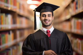 indian male graduate student work blurred background confident ambitious intelligent focused driven motivated professional career success future technology innovation education knowledge learning development potential growthImagine Buddy