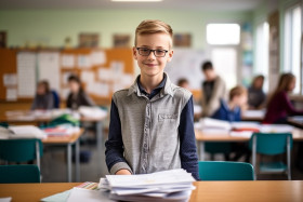 student education learning school elementary boy male child confident focused determined studious intelligent bright motivated ambitious learning studying working focused blurred background classroomImagine Buddy
