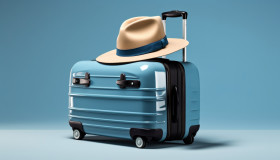 Luggage and hat ready for travel, adventure travel stock images, adventure travel ai prompts, travel stock images ai