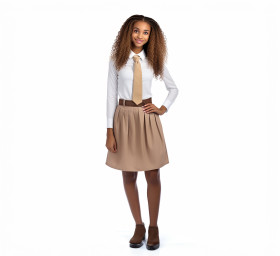 female high school student education school uniform teenager youth girl young white background isolated portrait headshot smiling happy thoughtful serious bored sad angry confused curious determined confident intelligent studious ambitious motivated successful talented isolated aloneImagine Buddy