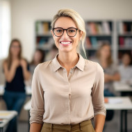 teacher woman female blur classroom education school student learning teaching lecture knowledge instructor tutor mentor profession career occupation job adult smiling friendly happy work professional educationist instructor educatorImagine Buddy