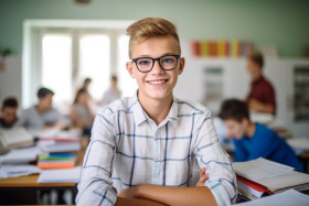 student male middle school middle school student boy smiling friendly work blurred background education learning school technology computer laptop tablet screen classroom study assignment homework project researchImagine Buddy
