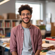 student international male friendly smiling work blurred background education learning studying laptop office business concentration focus focused motivated determined hardworking success ambition career future global diversity culture inclusionImagine Buddy